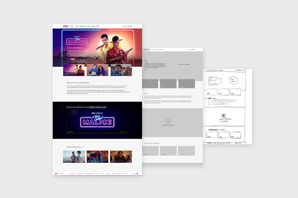 Creating landing pages for the Sky Media Village website, giving journalists access to content on upcoming broadcasts. Producing a page with easily accessible content including imagery, trailers, synopsis and show highlights.