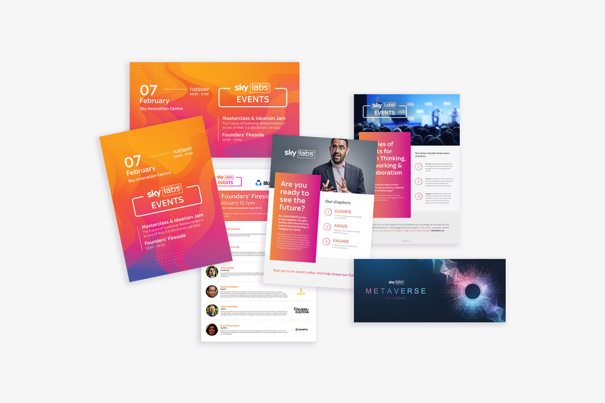 Creating brand guidelines, design and build of the Sky Labs website. Delivering printed marketing collateral to promote the brand within Sky.
