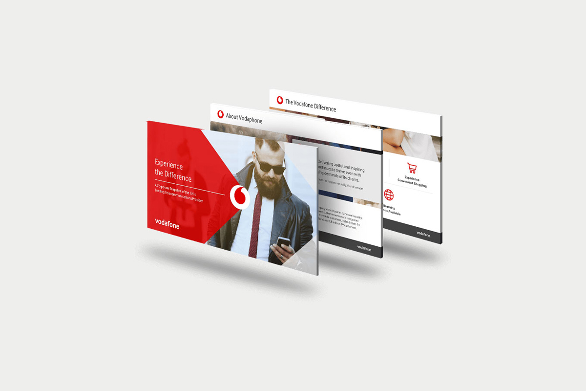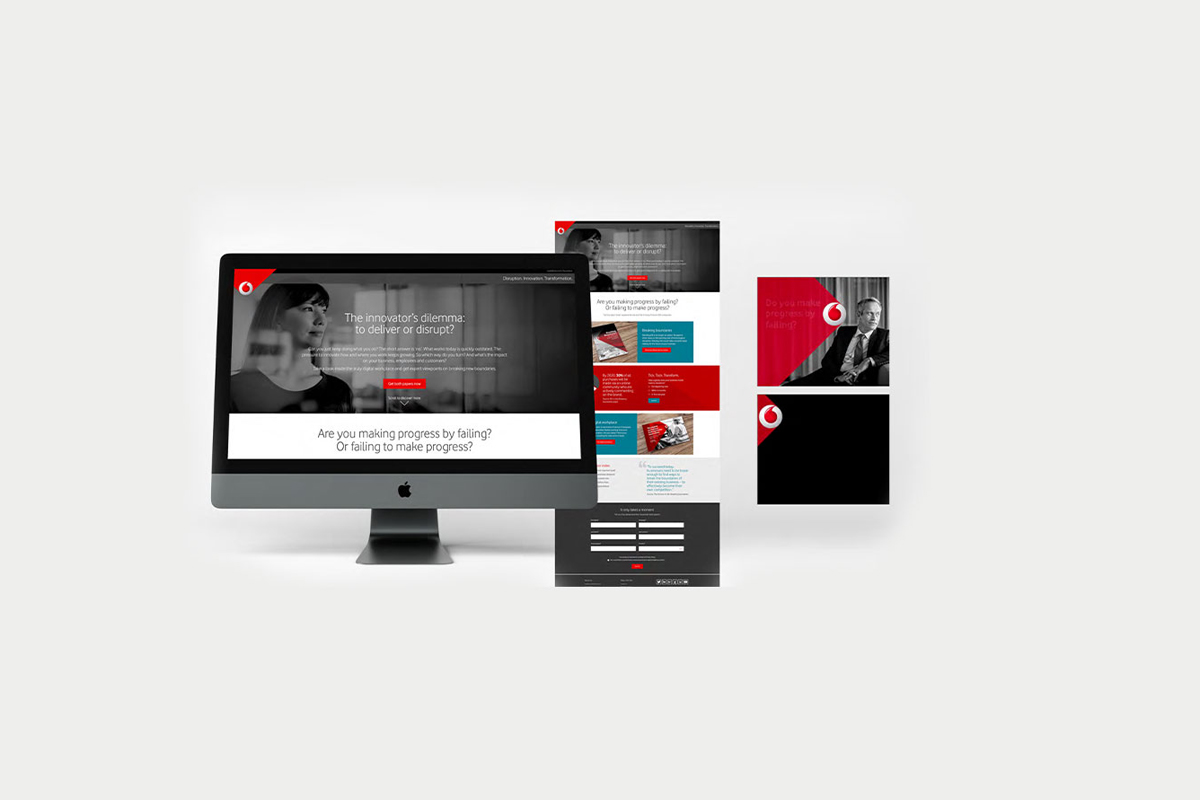 A promotional piece to support Vodafone's 'Business Solutions' area focusing on small businesses. This involved image sourcing, creating wireframes and refining page layout whilst adhering to brand guidelines.